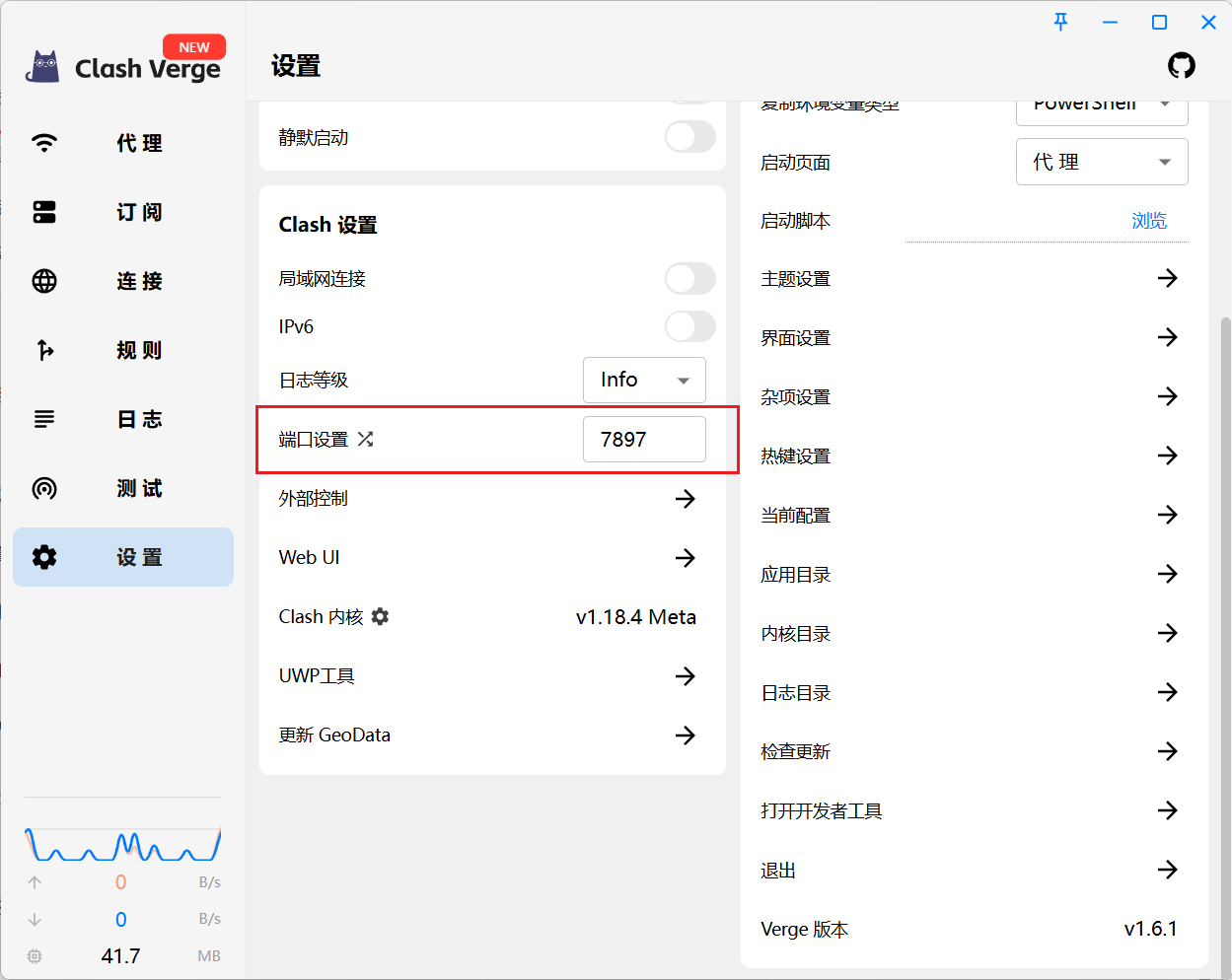 复制 Clash Verge 设置页面 端口设置 的端口号,比如 7897