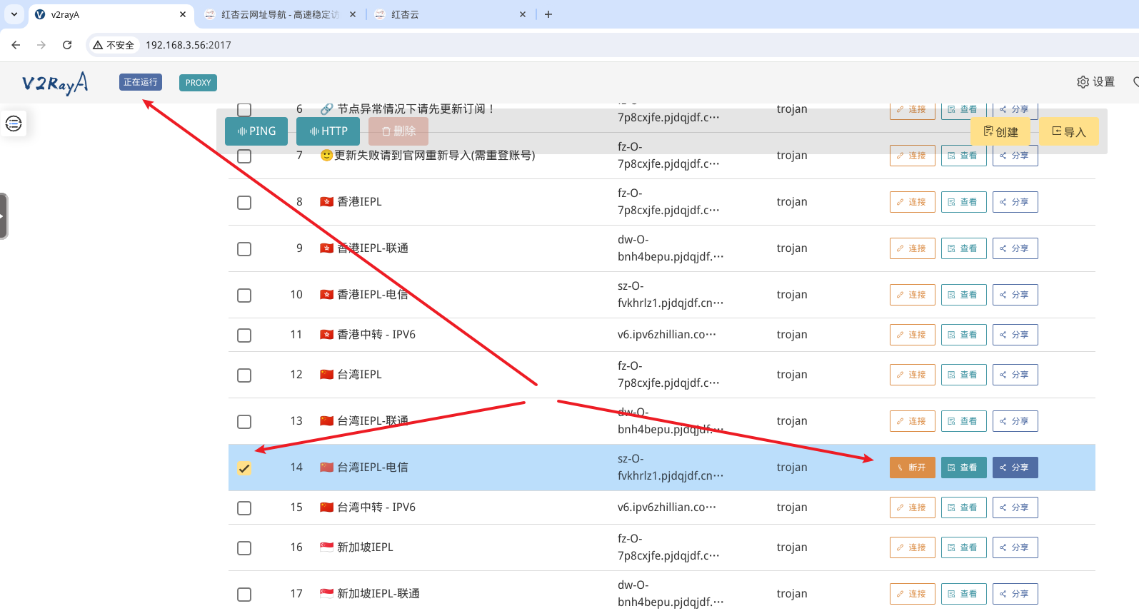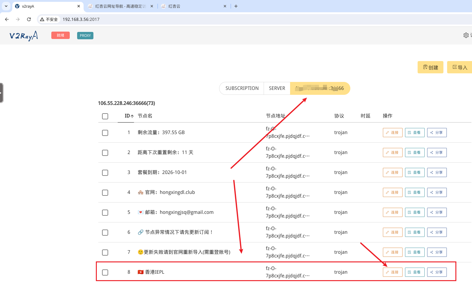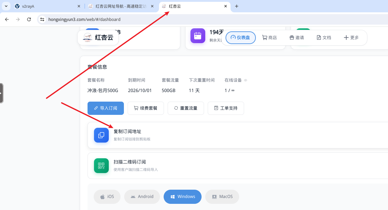 在NAS的浏览器中,新建一个窗口,登录你的机场账号,并一键复制,然后粘贴进v2rayA中