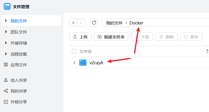 在“文件管理”——Docker中,创建一个名字为“v2rayA”的文件夹